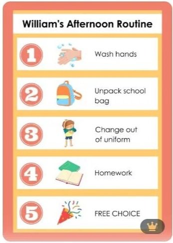 Pro tip: Visual schedules aren’t just for the whole day. Mini-schedules for challenging routines (bedtime, leaving the house, homework) are often the most effective.